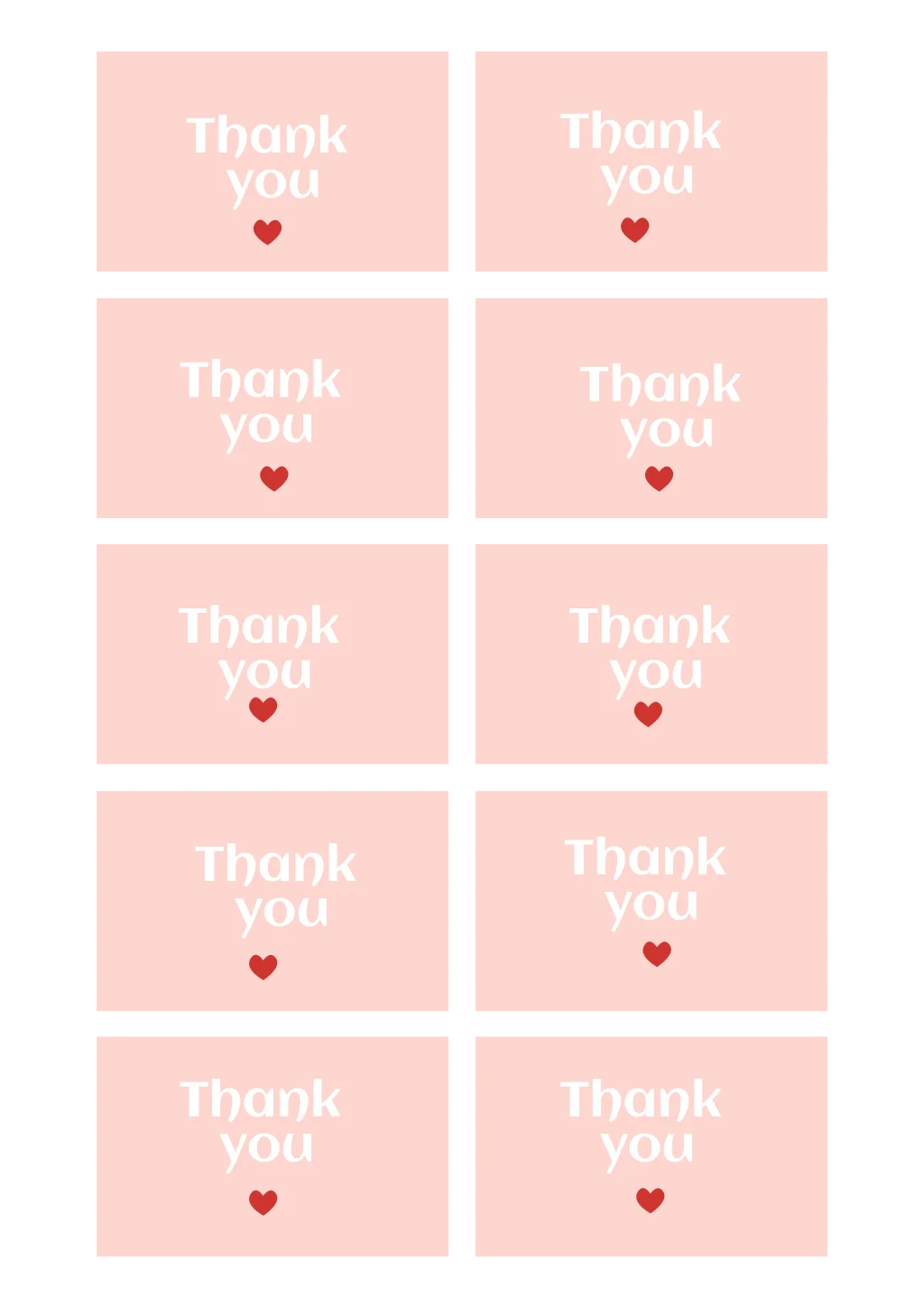 Kleine bedankkaartjes met tekst thank you 10x. Uiteindelijk formaat kaartjes 8x5m. Kaartjes zijn naar wens aan te passen. (999999)
