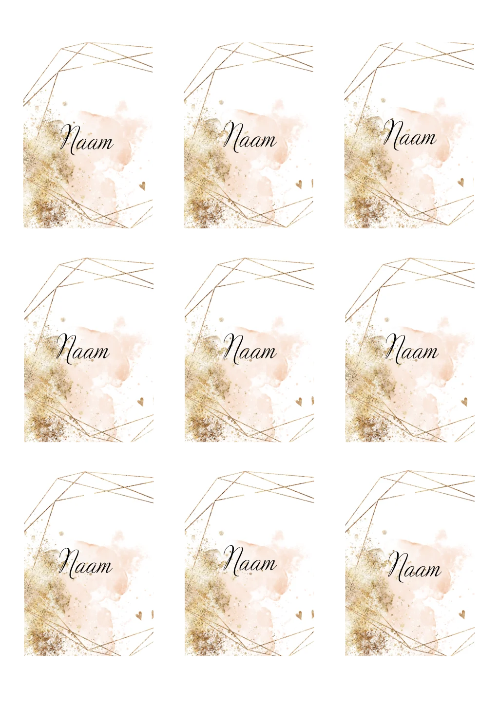 Naamkaartjes 9 stuks botanisch 8 x 5,5 cm cm met geometrisch design en verf (8144)