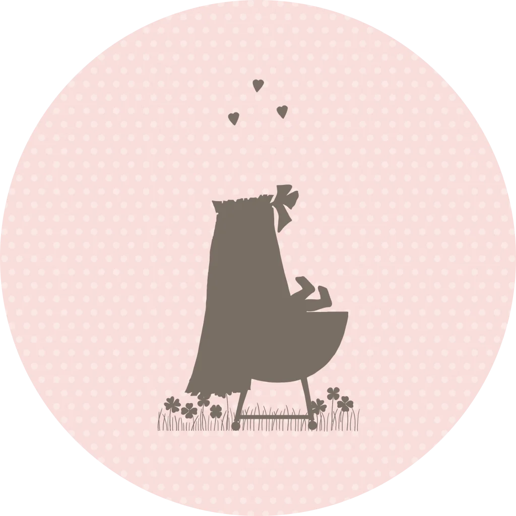 Sluitzegel baby meisje in wieg oud roze achtergrond (6485)