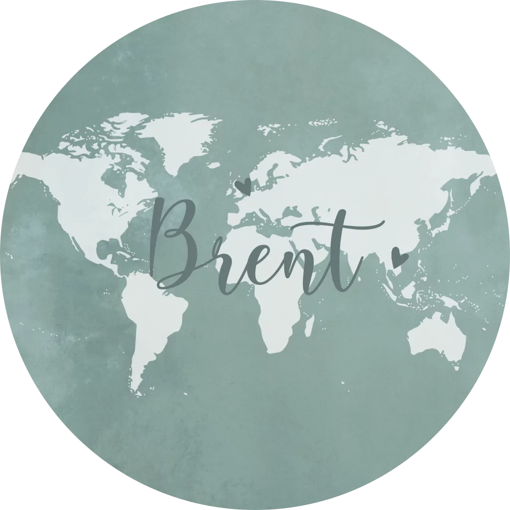 Sluitzegel geboorte jongen petrol met wereldkaart. (22817)