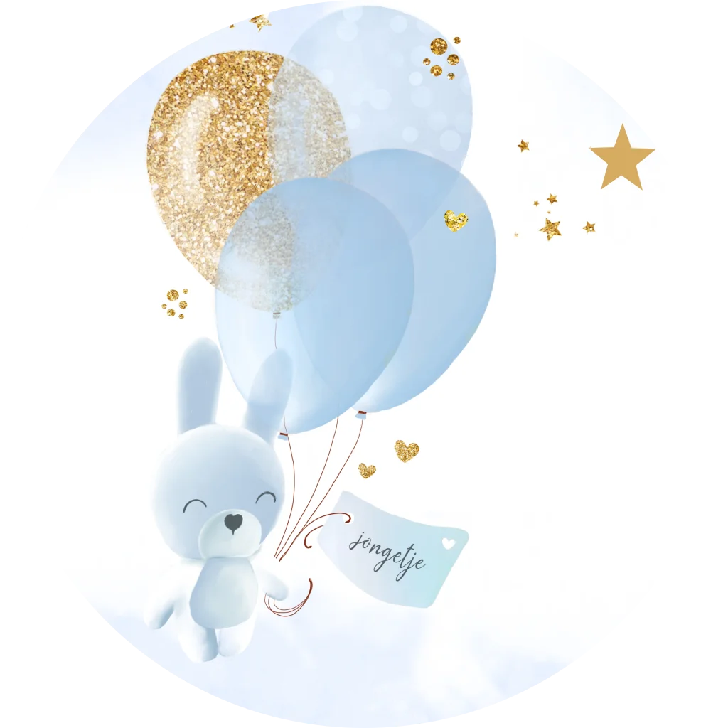 Sluitzegel baby jongen geboorte met konijntje en ballonnen. (23852)