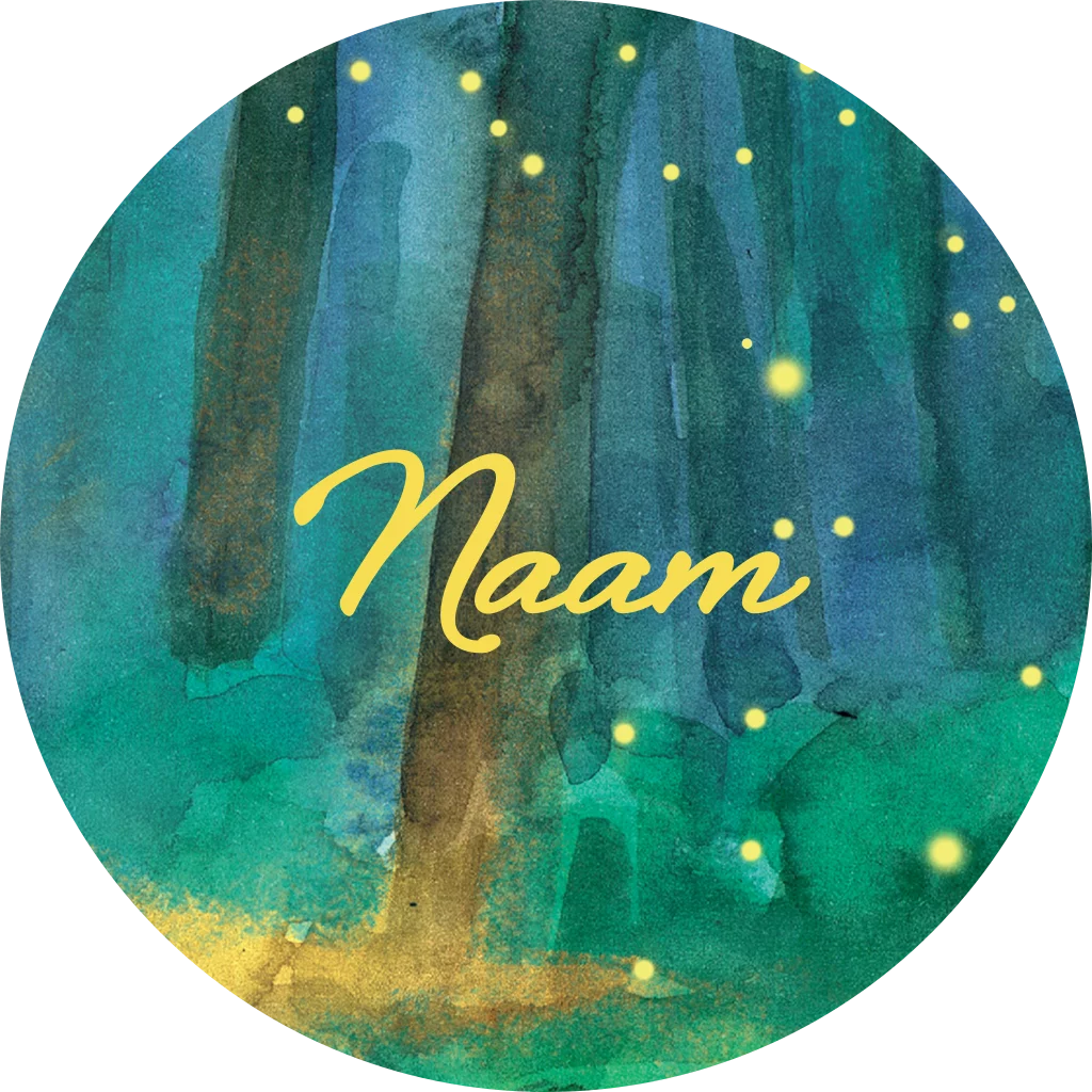 Sticker geboorte en vuurvliegjes in bos. (21326)