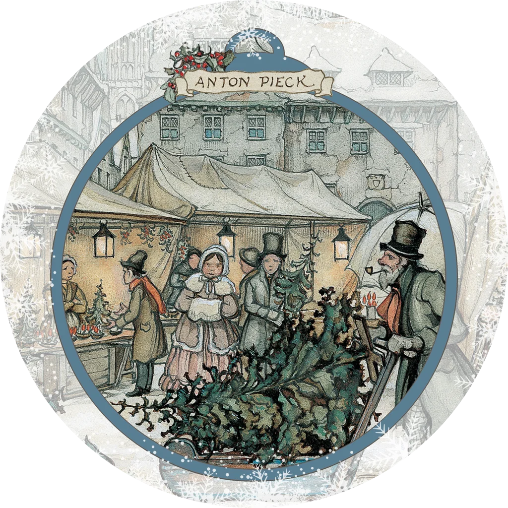 Sluitzegel Anton Pieck kerstkaart van de kerstmarkt