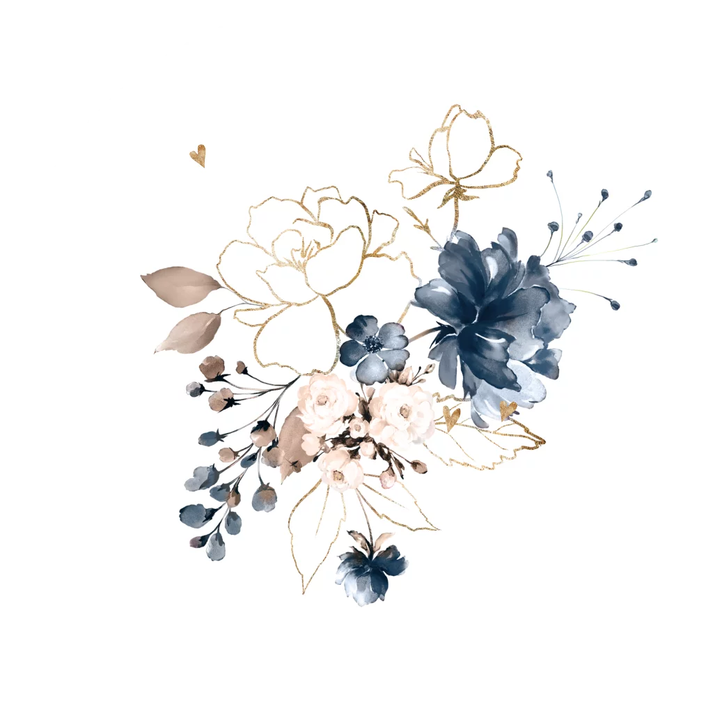 Sluitzegel bloemen blauw en goud-look. (8143)