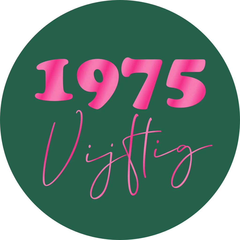 Sluitzegel of sticker 50ste verjaardag feestje vrouw 50 Jaar in 1975 geboren. (23710) Met mooi roze hoogglans effect.