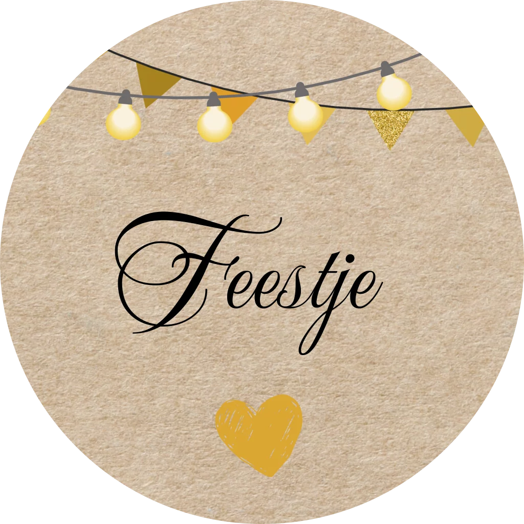 Sticker feestje op karton met lichtslinger. Alles staat los op dit kaartje en is te bewerken. (5168)