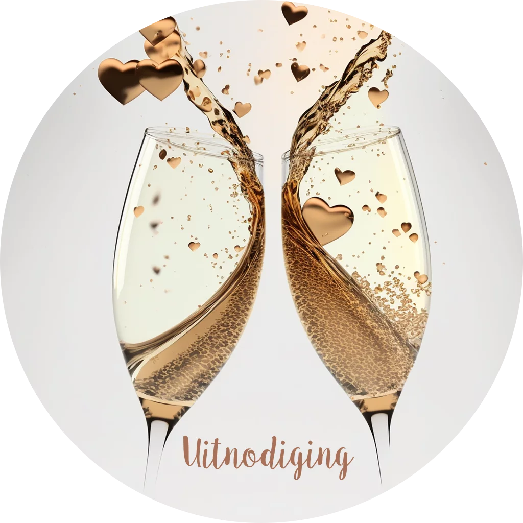 Sluitsticker envelop Uitnodiging met CHAMPAGNE en goudkleurige HARTJES. (24085)