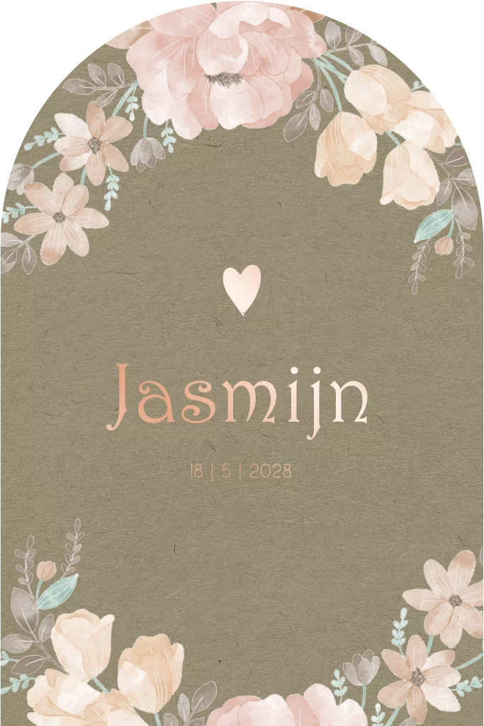 Geboortekaartje boogvorm voor een meisje met bloemen