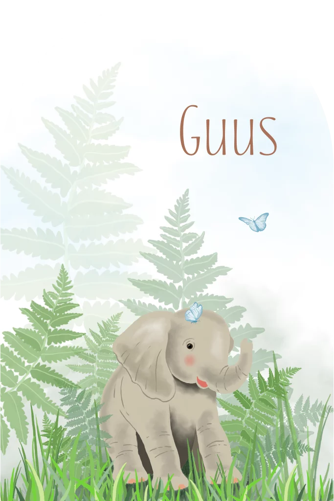 Geboortekaartje voor een jongen olifantje in het oerwoud