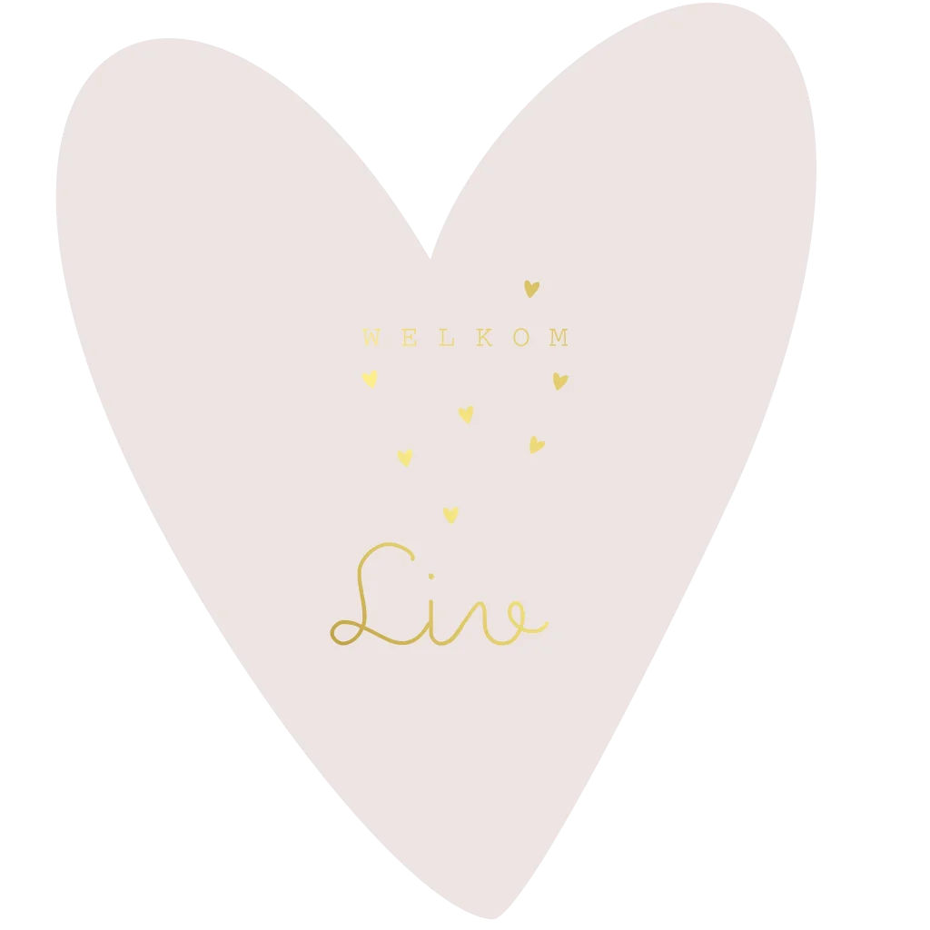 Geboortekaartje meisje met foliedruk in de vorm van een hartje. (23465) geboortekaartje Liv