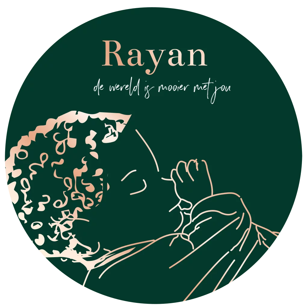 Geboortekaartje voor een jongen in een bijzondere ronde vorm met een silhouet van een slapende baby met krullen. (999999)