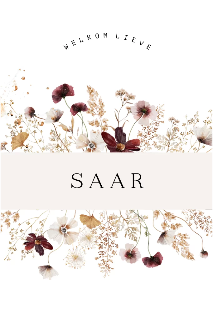 Geboortekaartje voor een meisje in ovale vorm met bloemen. (23365) Geboortekaartje Saar
