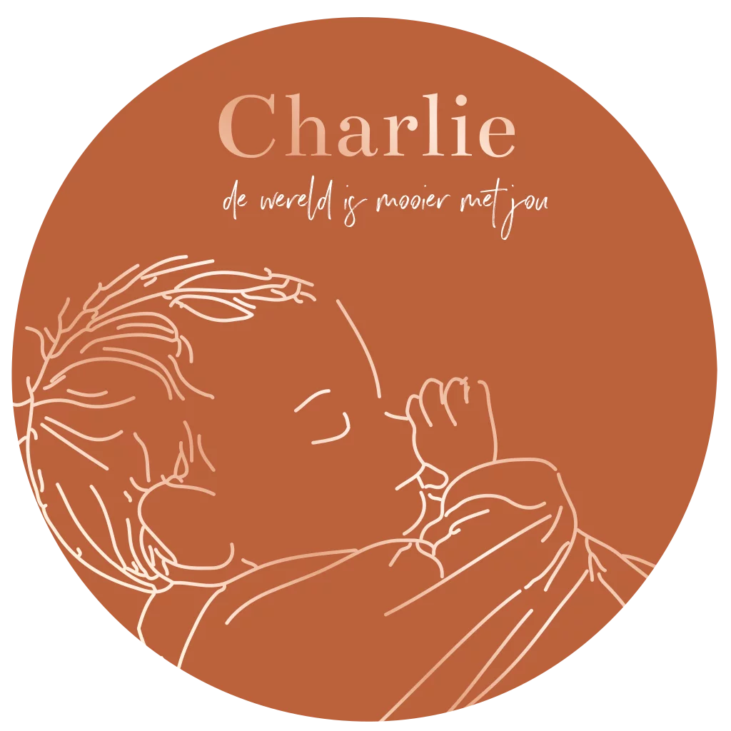 Geboortekaartje voor een jongen of meisje in een bijzondere ronde vorm. Met een tekening van een slapende baby in foliedruk (999999)