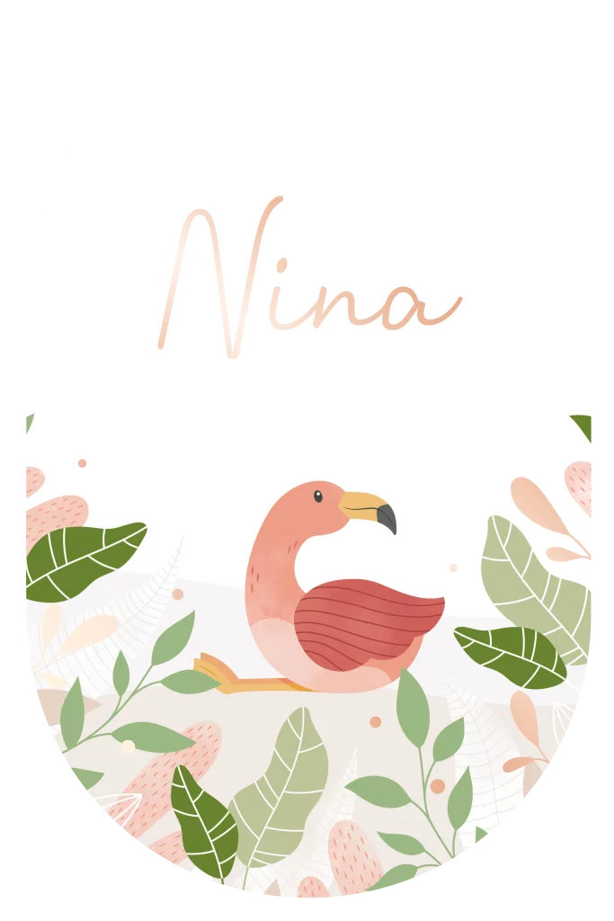 Flamingo geboortekaartje ovaal voor een meisje met flamingo