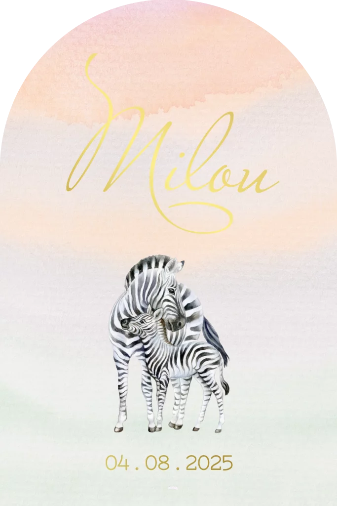 Neutraal geboortekaartje met goudfolie en ronde bovenkant