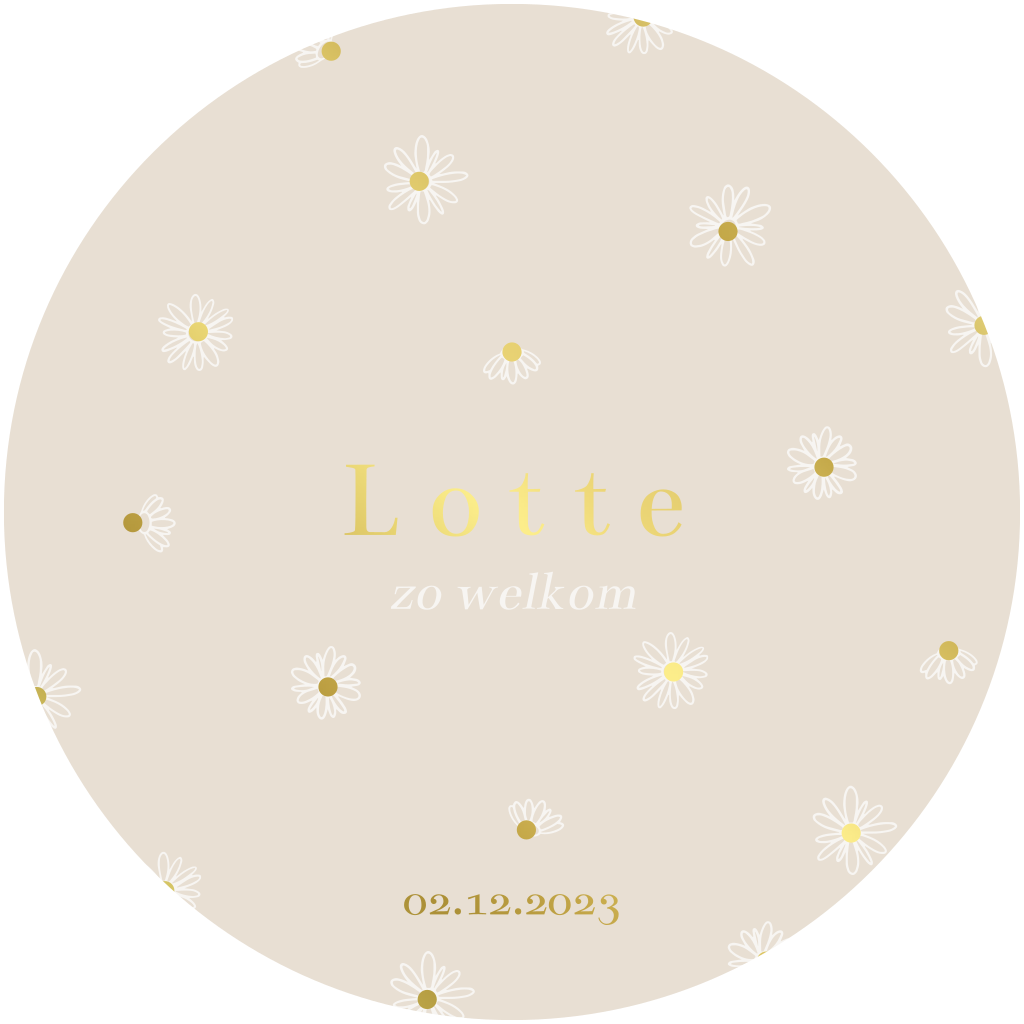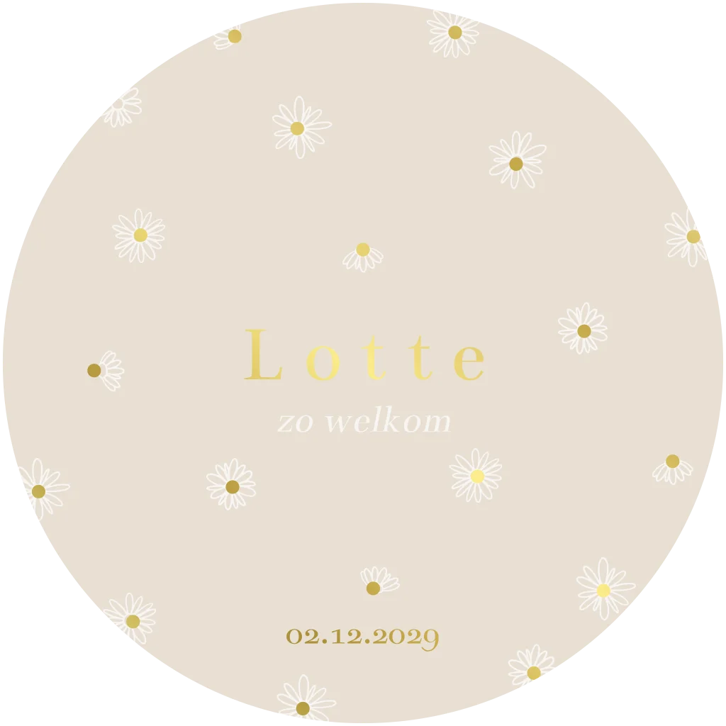 Lief rond geboortekaartje met madeliefjes en goudfolie. (23167)