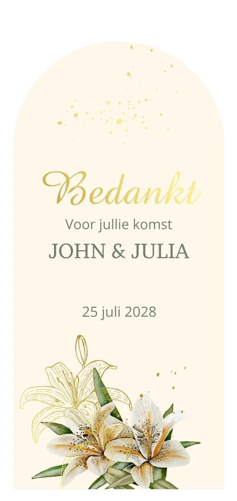 Bedankkaart in een bijzondere boogvorm en met witte lelie. (999999)