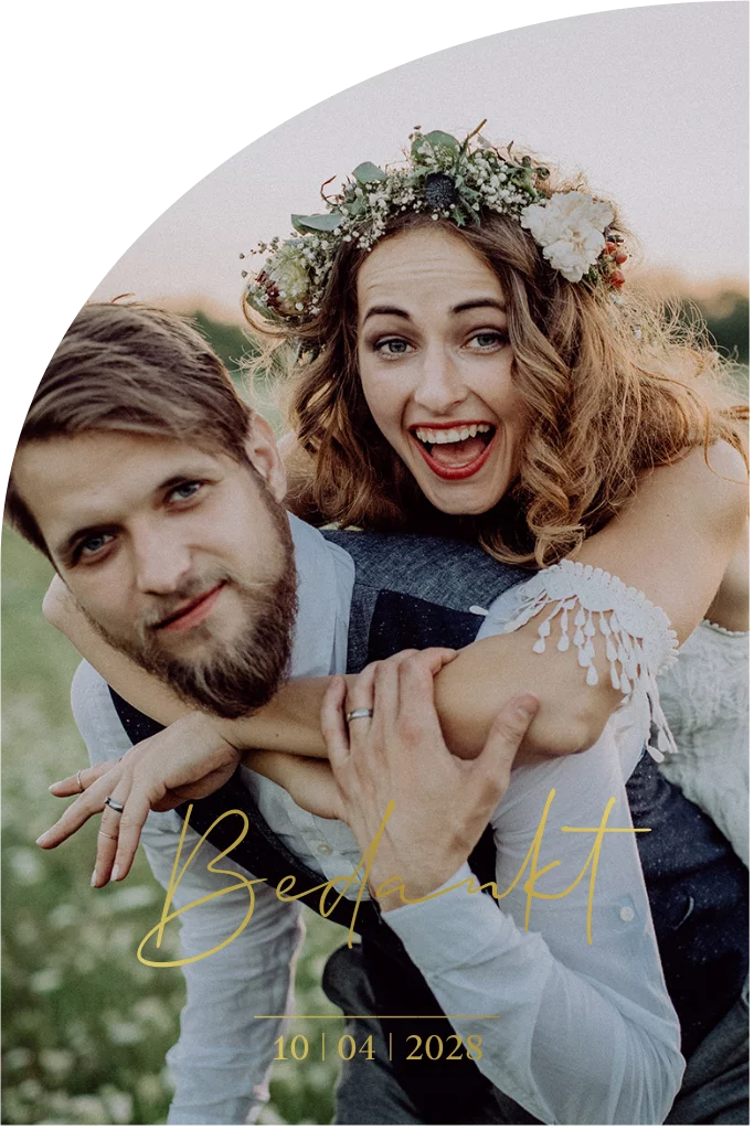 Bedankkaart trouwen halve boog vorm goudfoliedruk