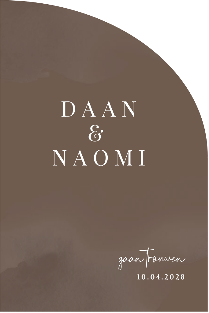 Luxe trouwkaart in warme bruine / zand terra kleur. Gestanst in boogvorm. (23648) Deze prachtige trouwkaart in zandterrakleur is een echte eye-catcher! Op zoek naar iets unieks? Dan is deze kaart perfect voor jou. Luxe trouwkaarten zijn niet alleen mooi om naar te kijken, maar geven ook een extra dimensie aan jouw speciale dag. Laat je gasten weten dat ze iets bijzonders kunnen verwachten met deze unieke trouwkaart.