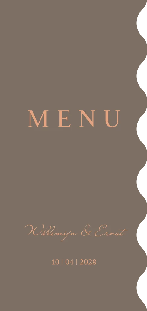 Menukaart taupe stans met een rand aan 1 kant met golven. (23400)