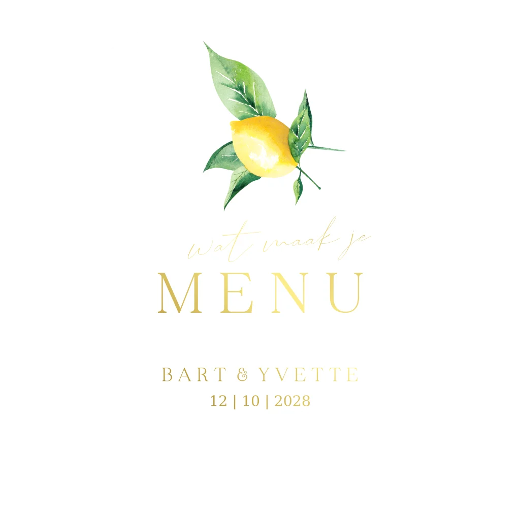 Moderne menukaart in ronde vorm met citroen en foliedruk. (23462)