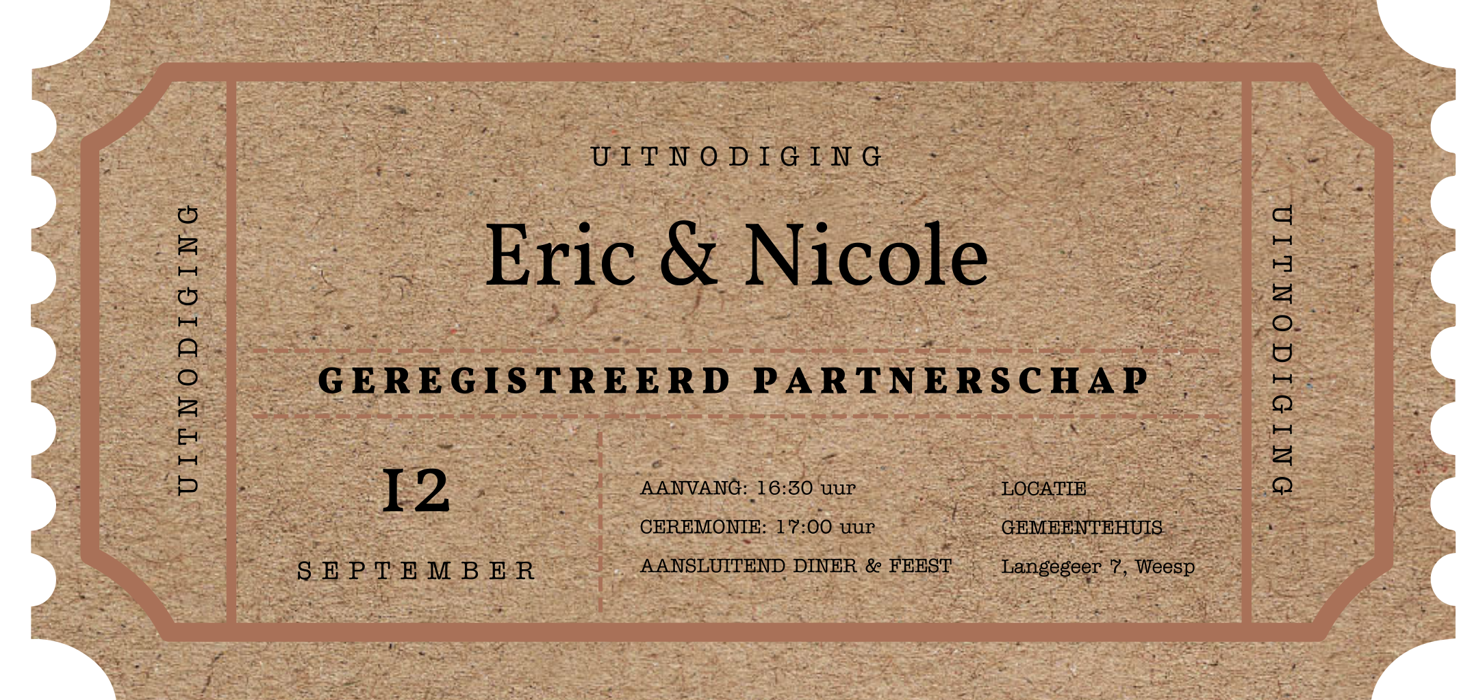 Uitnodiging partnerschap ticket stans met kraft look achtergrond