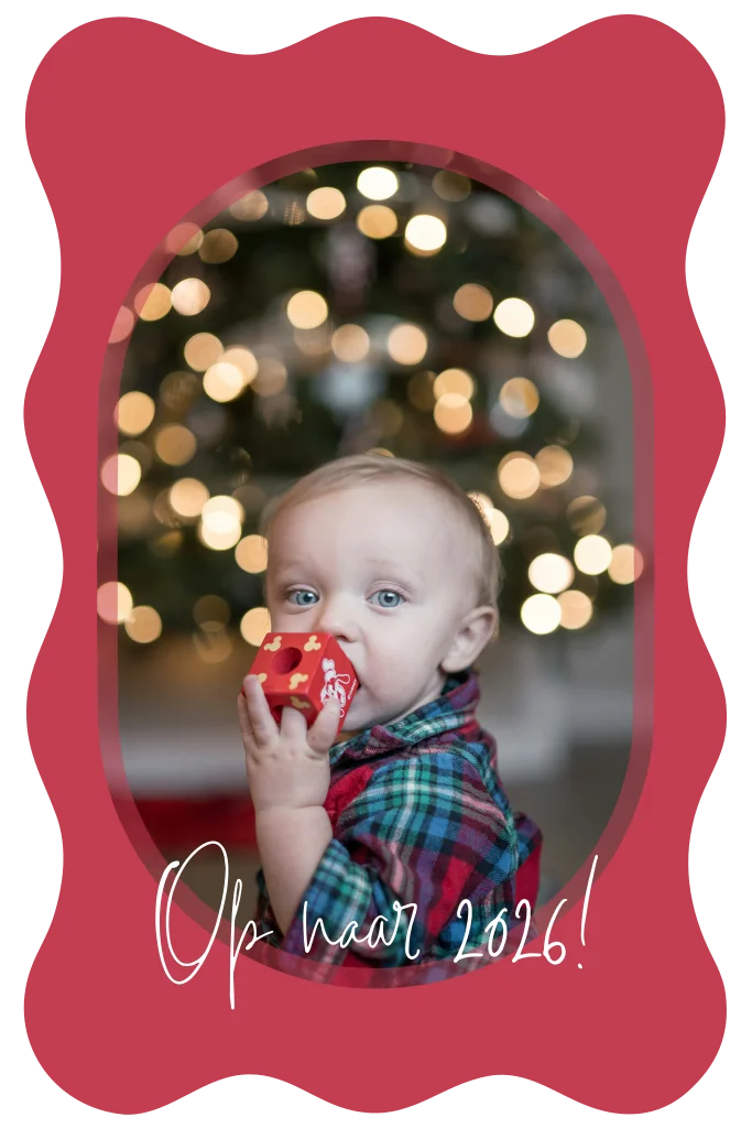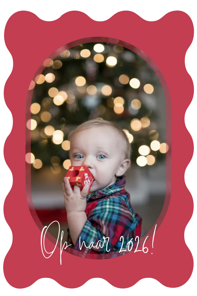 Foto kerstkaart kindje met biscuit vorm / golvende rand. De kleur is naar wens aan te passen. (30236)