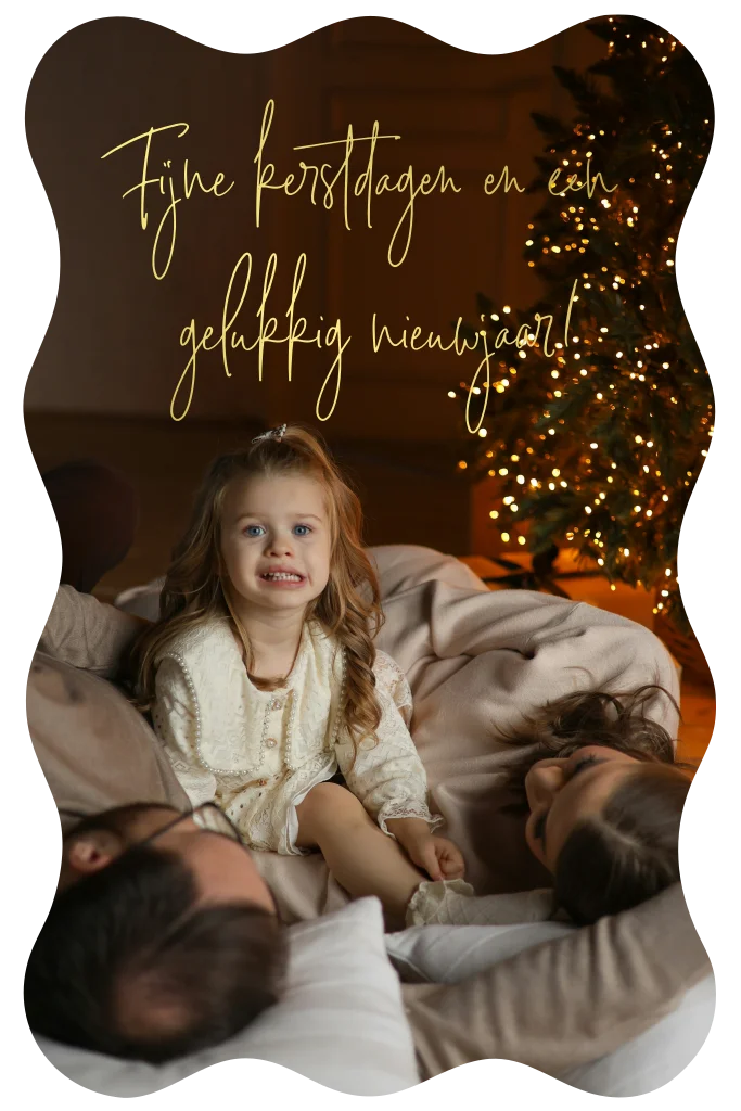 Foto kerstkaart met familiefoto / gezinsfoto met biscuit vorm / golvende rand. De kleur is naar wens aan te passen en op de achterkant kun je ook een foto plaatsen. (30235)