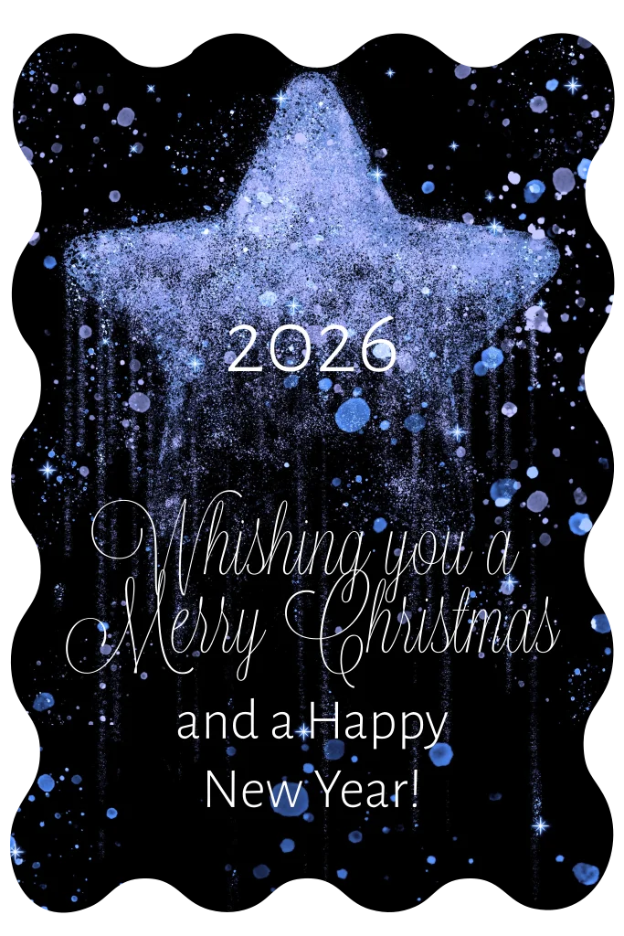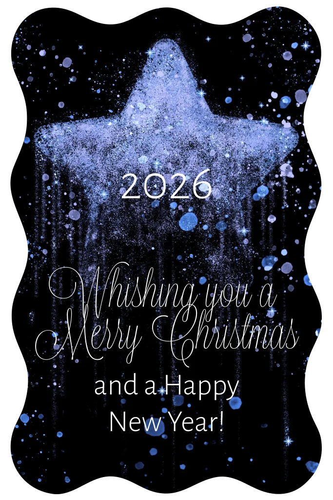 Kerstkaart blauwe ster 2026