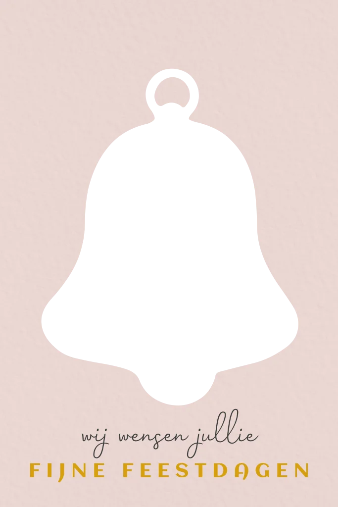 Kerstkaart met foto achter een uitgesneden kerstklok