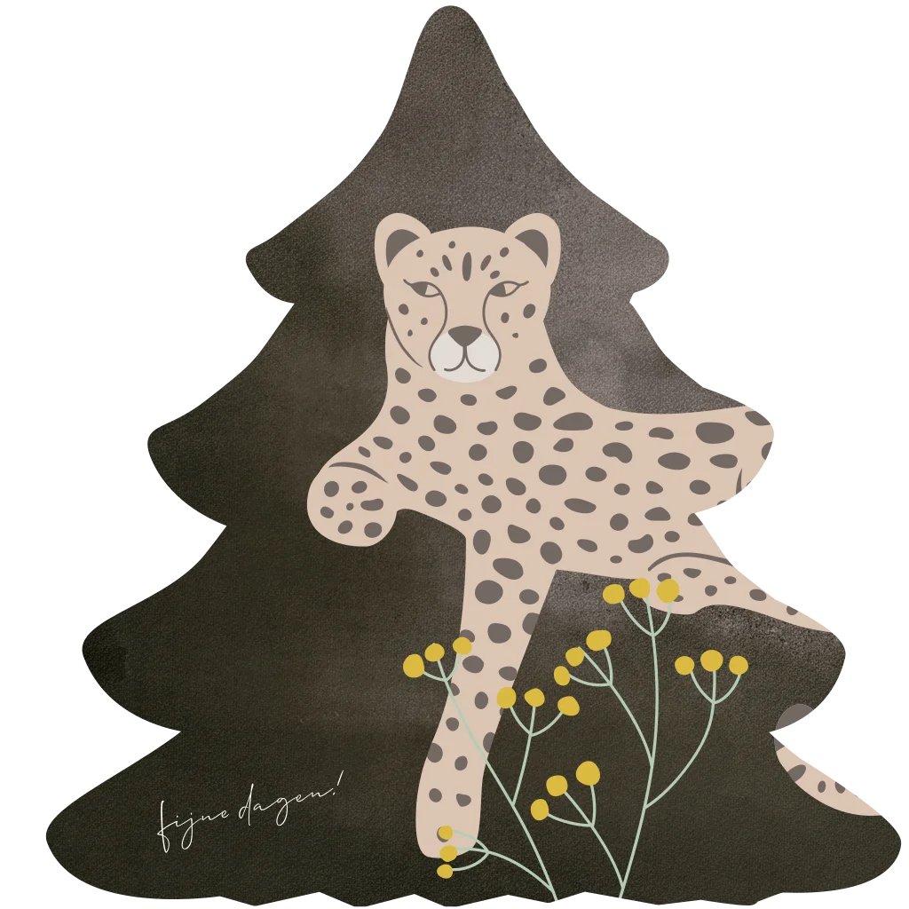 Kerstkaart in kerstboom stans vorm panter chocolade