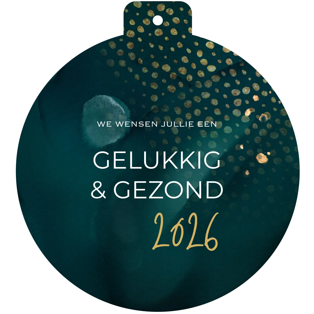 Hippe Kerstkaart in de vorm van een kerstbal. Tip: Bestel deze kaart in het formaat 15x15 cm. (23615)