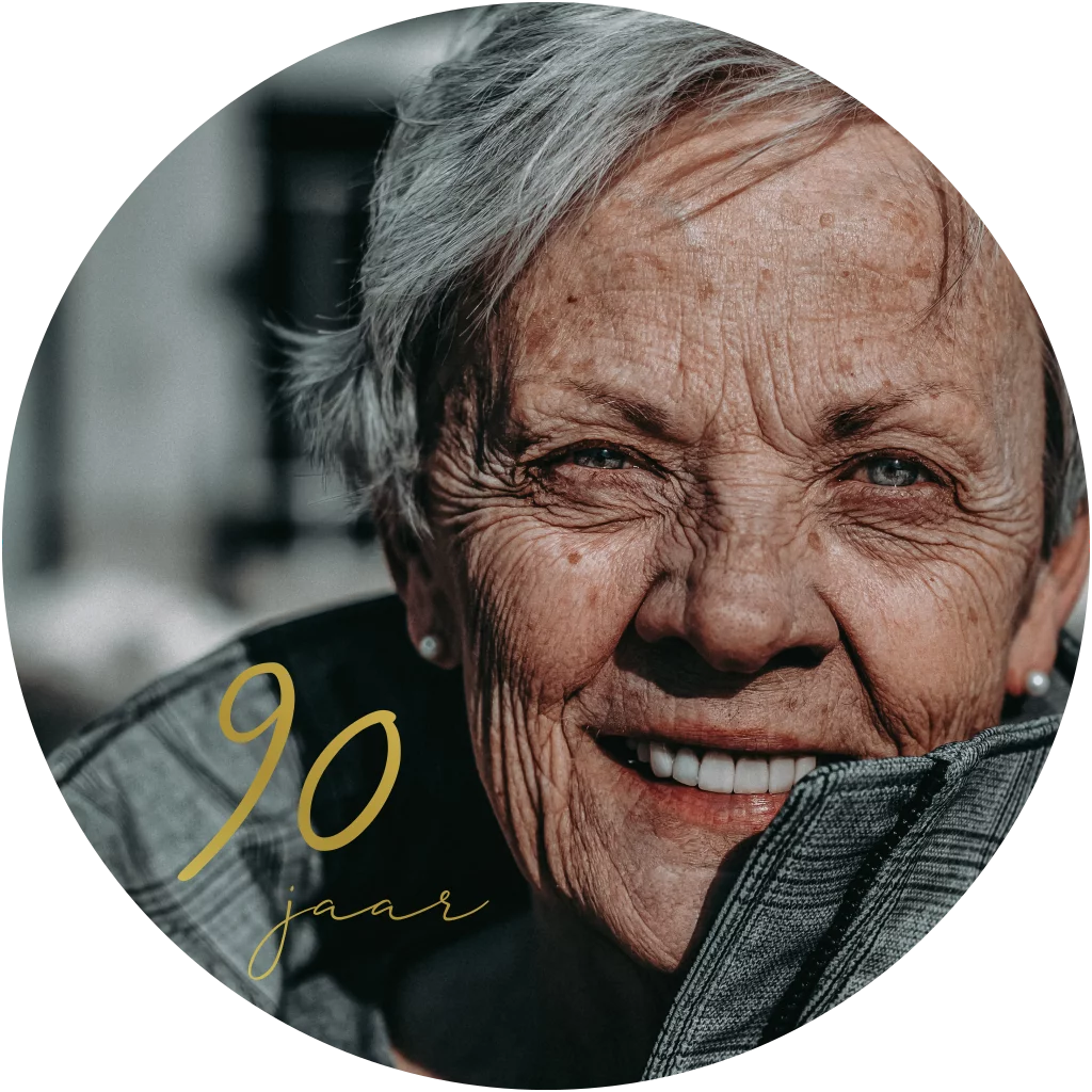 Ronde uitnodiging met foto verjaardag 90 jaar