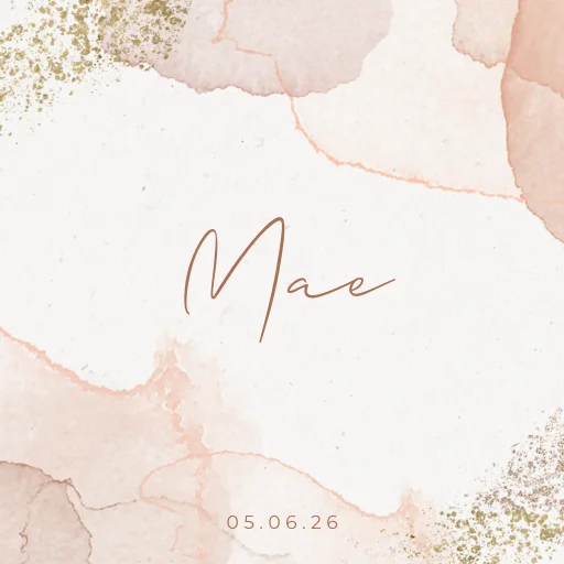 Geboortetegel meisje met waterverf achtergrond in licht roze en goudkleurige spetters. (23873)
