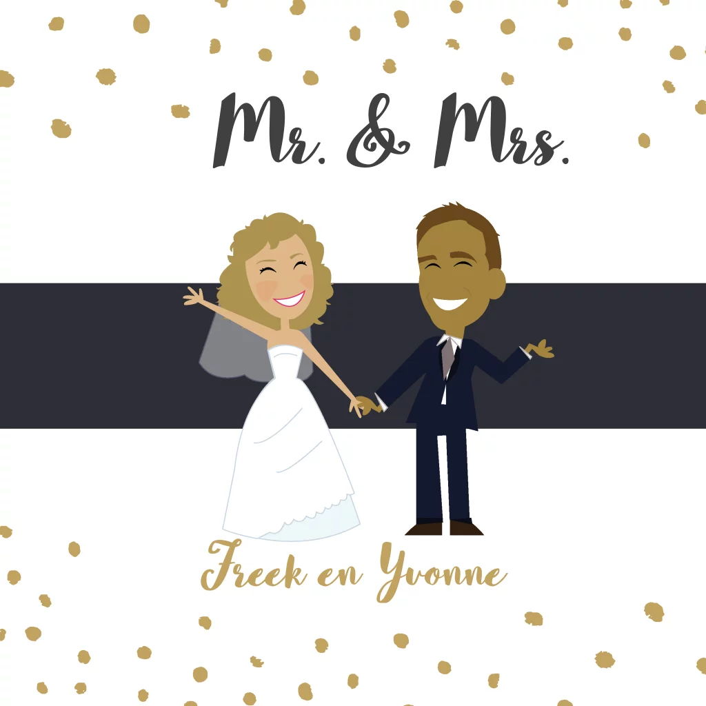 Trouwkaart sparkle stippel mr mrs cartoon wit