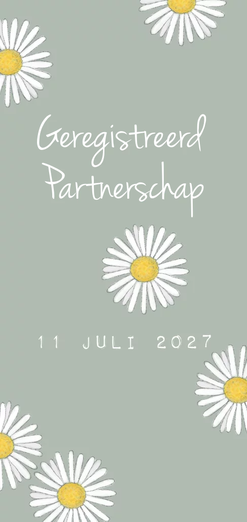 Uitnodiging Geregistreerd Partnerschap madeliefjes met goudfolie