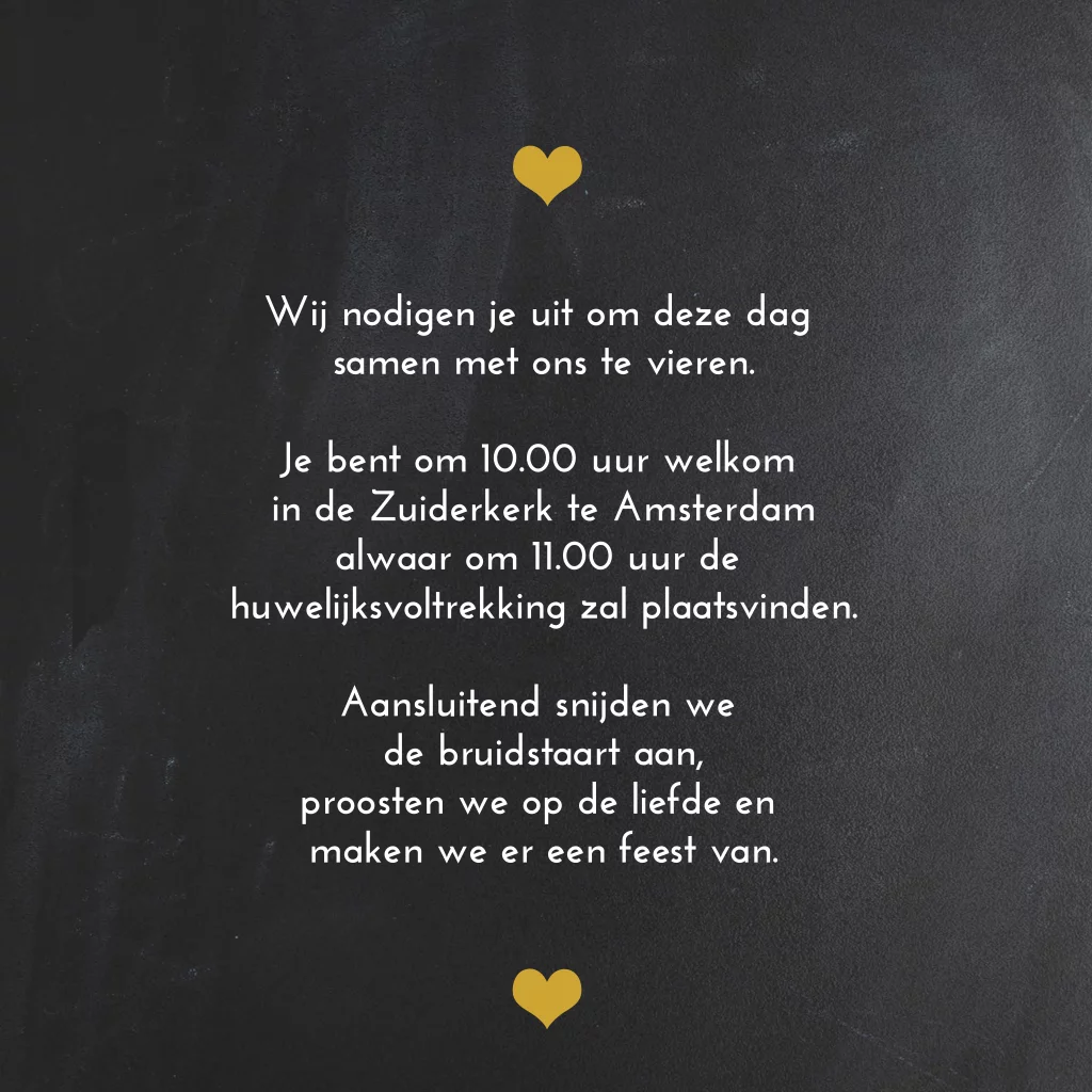 Een trouwkaart met èchte goudfolie! Het krijtbord geeft een leuk effect aan de kaart. (8385)