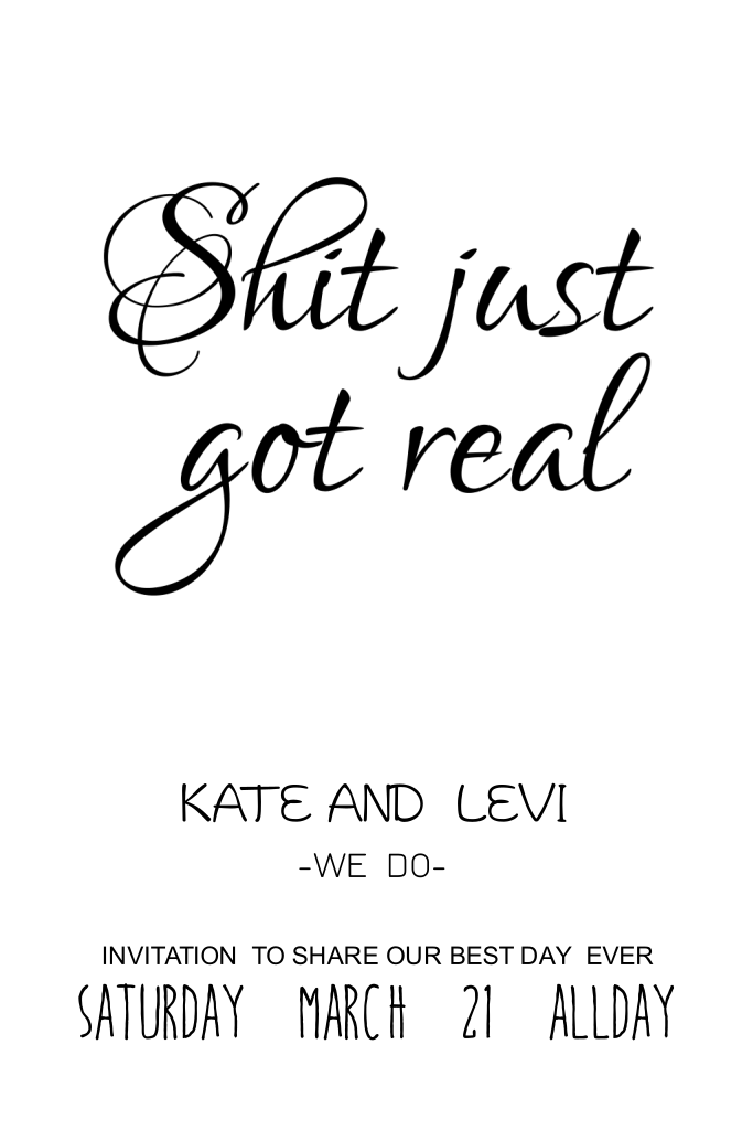 Hippe trouwkaart gedrukt met écht goudfolie druk, diamant en gouden hart en tekst 'shit just got real'. (8412)