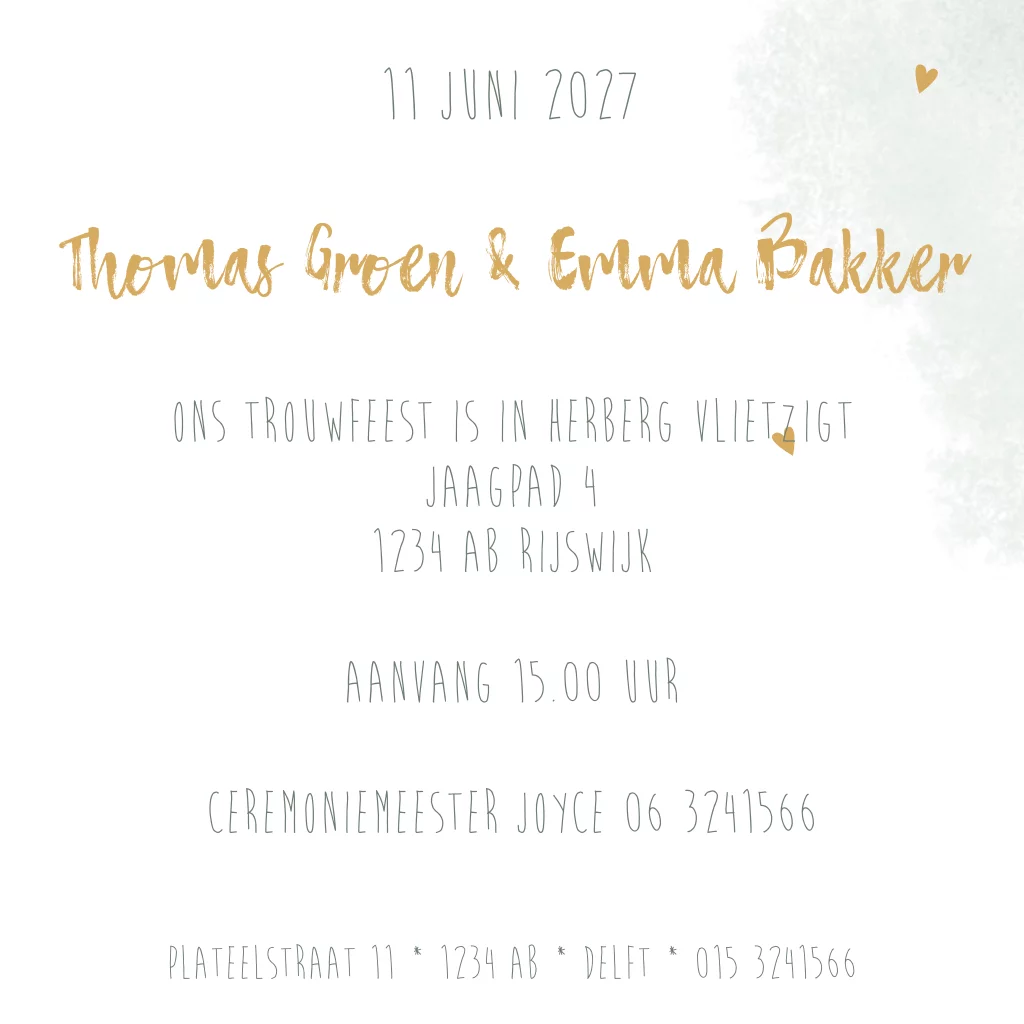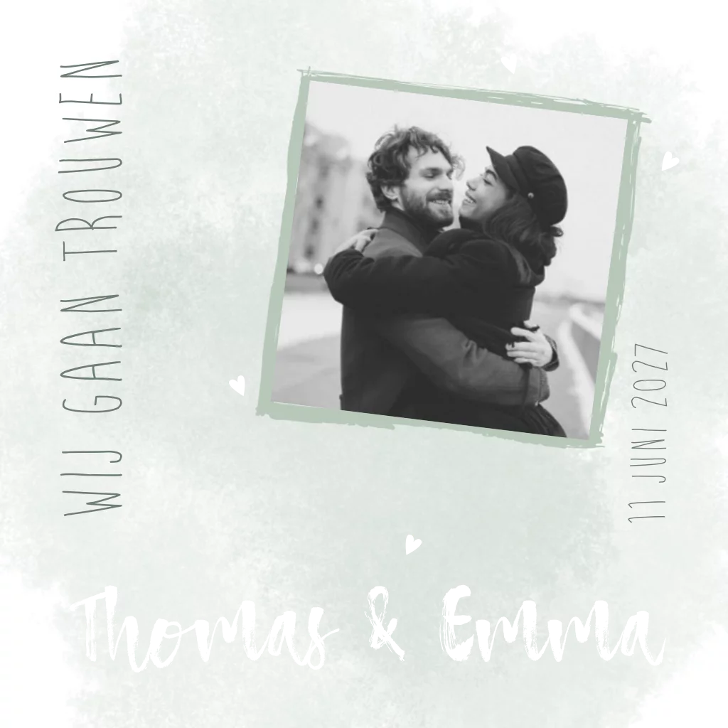 Een hippe trouwkaart met aquarel en goudfolie en ruimte voor een eigen foto. (21050)