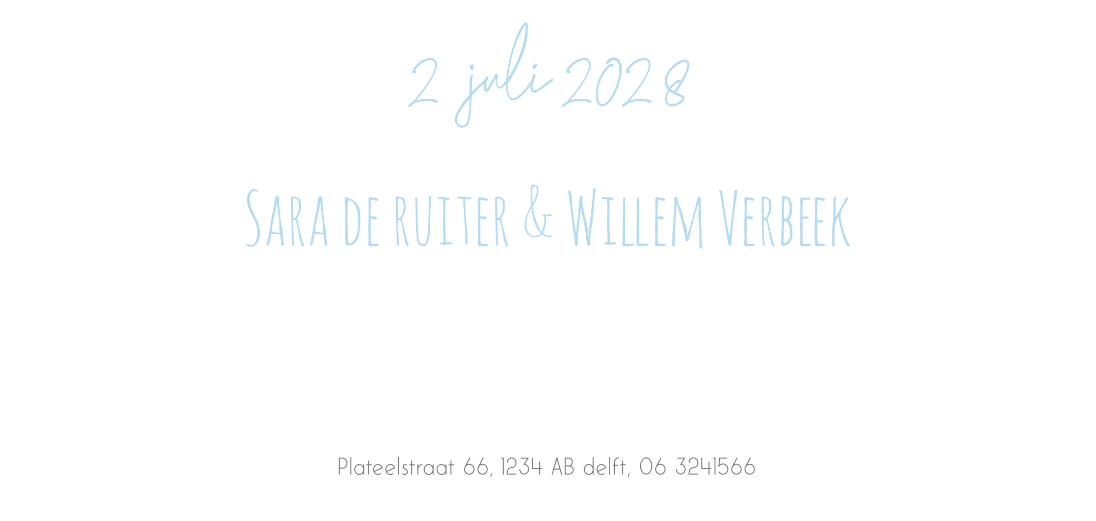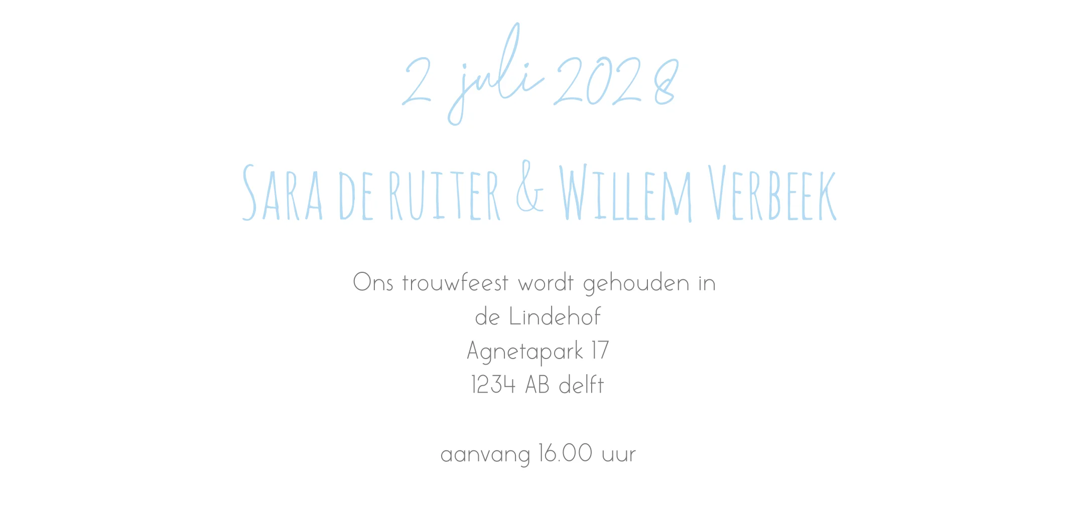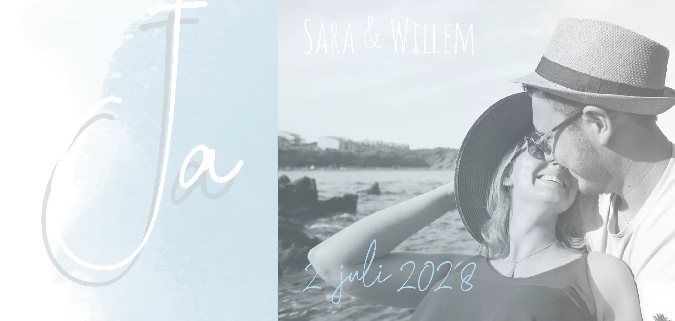 Een hippe trouwkaart met foto en dubbel Ja in zilverfolie. Op de achtergrond licht blauw aquarel. (22386)