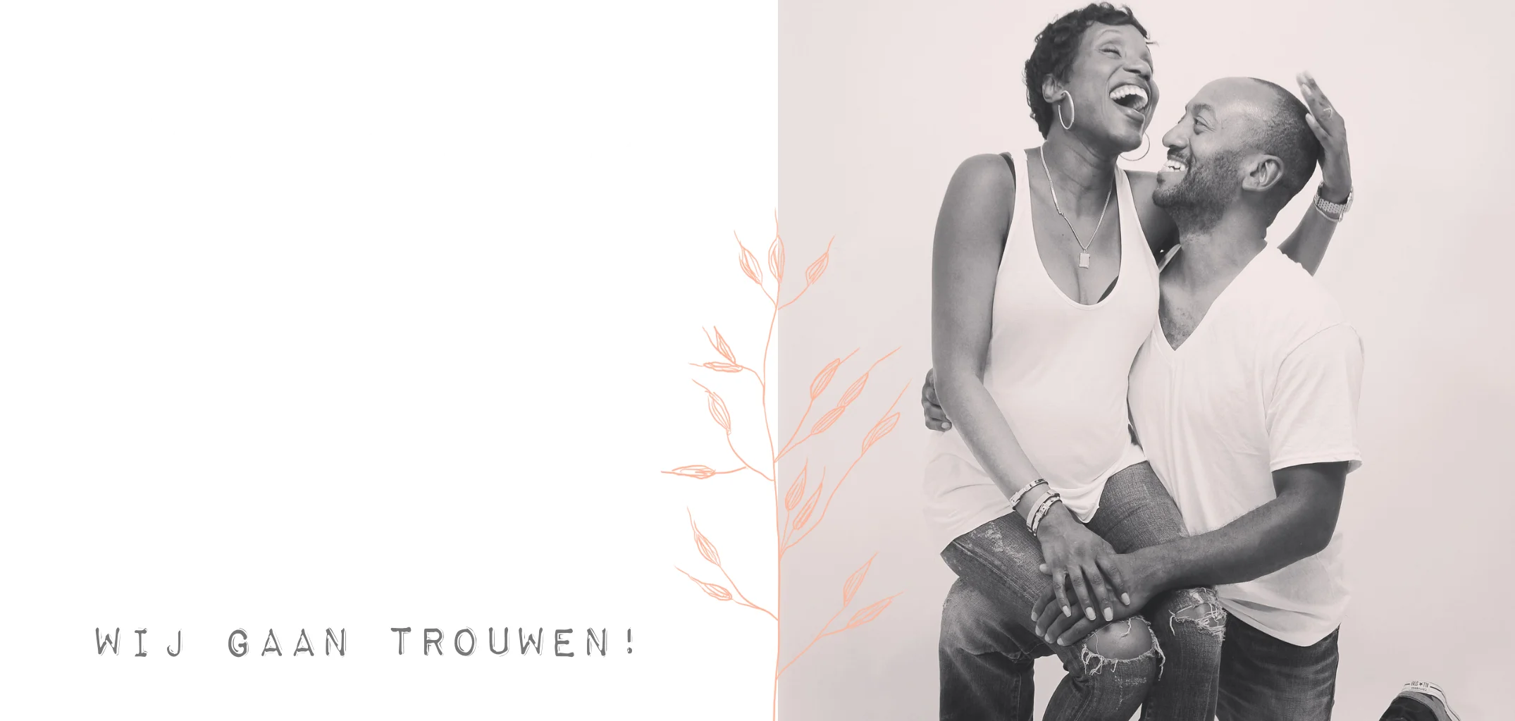 Trouwkaart met foto, takje en foliedruk koperfolie