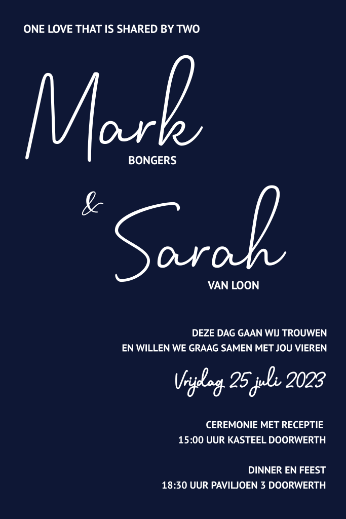 Trouwkaart minimalistisch navy blauw met alleen tekst