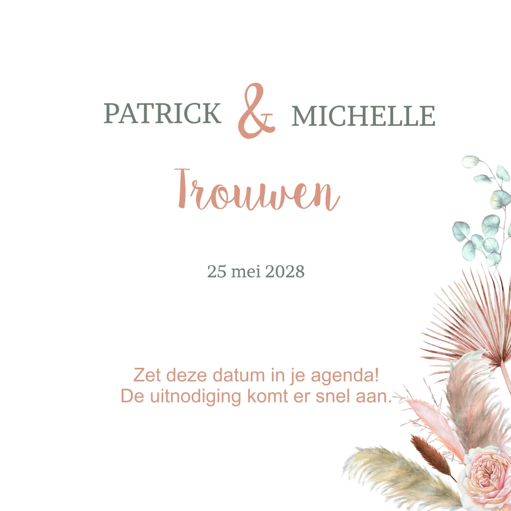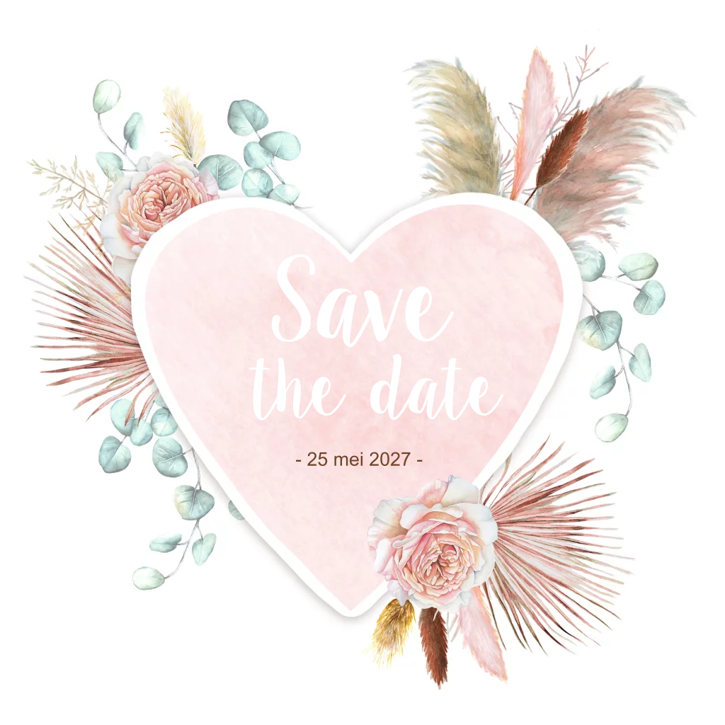 Save the date droogbloemen hart en rose folie