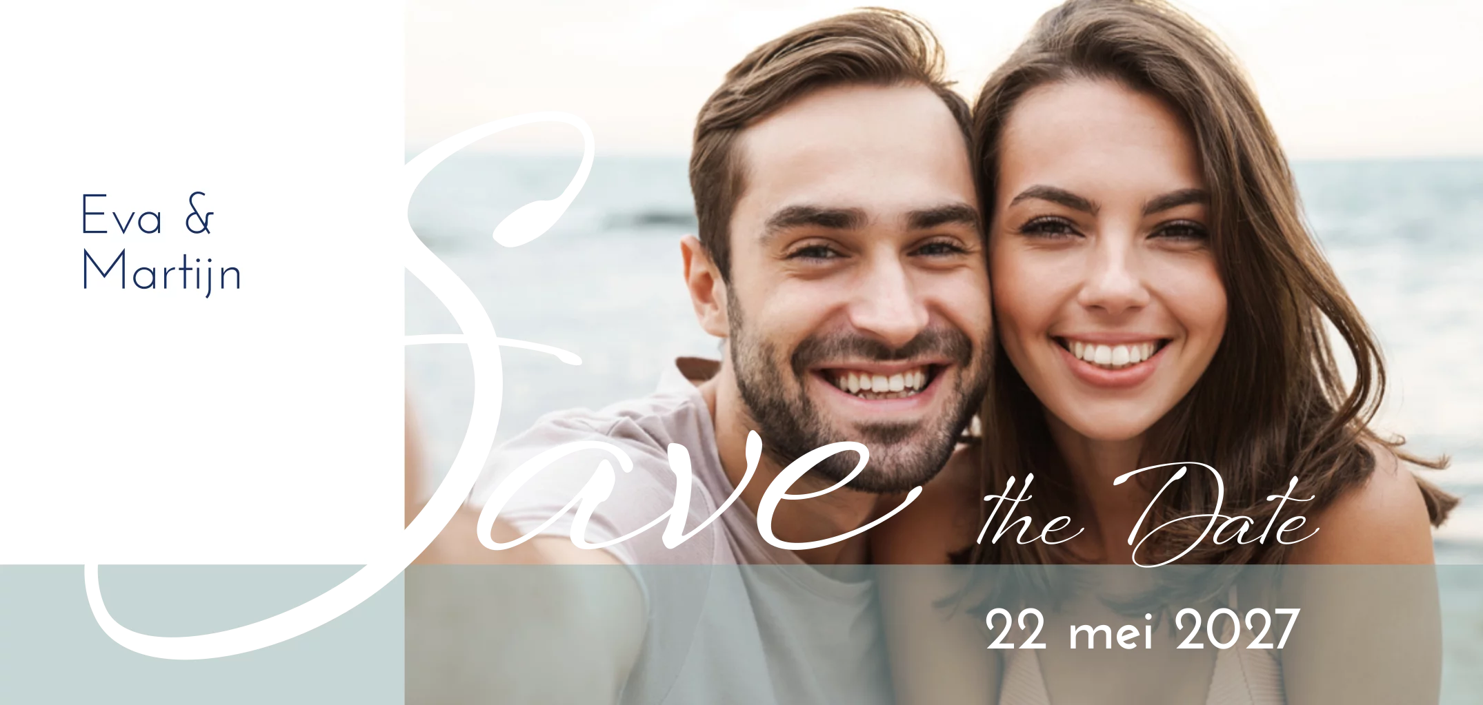 Hele mooie Save the Date kaart om te trouwen met je eigen foto. Blauwgrijze achtergrondkleur en kleur folie is te wijzigen. (22340)