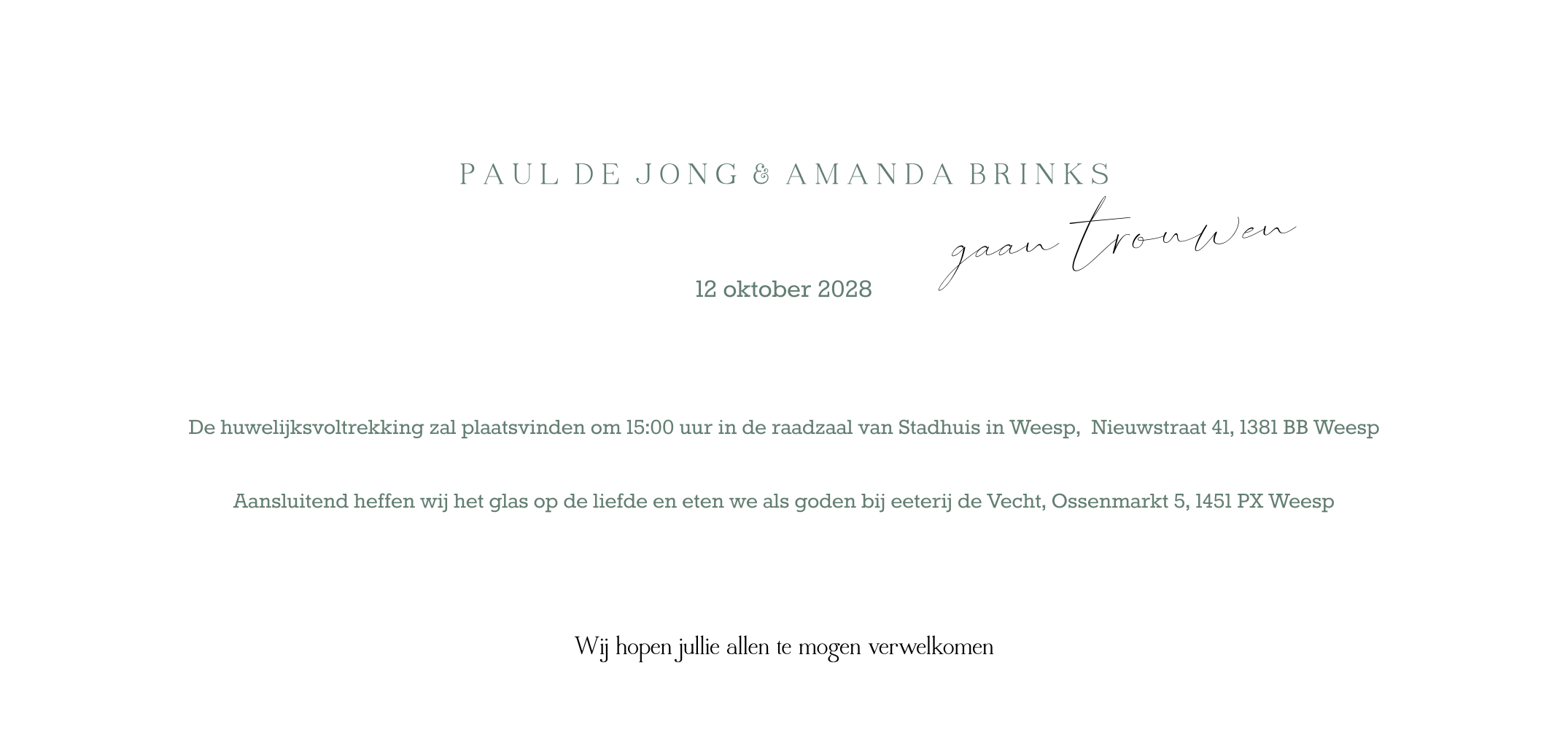 Trouwkaart Panorama minimalistisch design in mooi groen