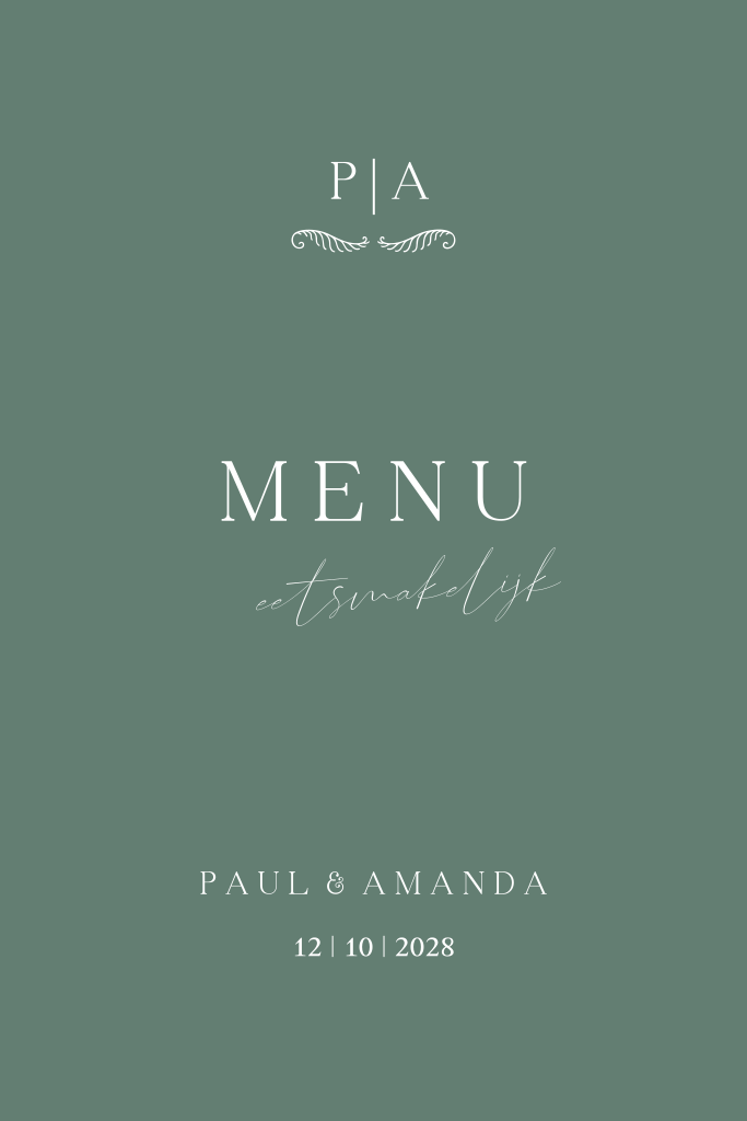 Clean en moderne menukaart met warme groene kleur en foliedruk. (23152)