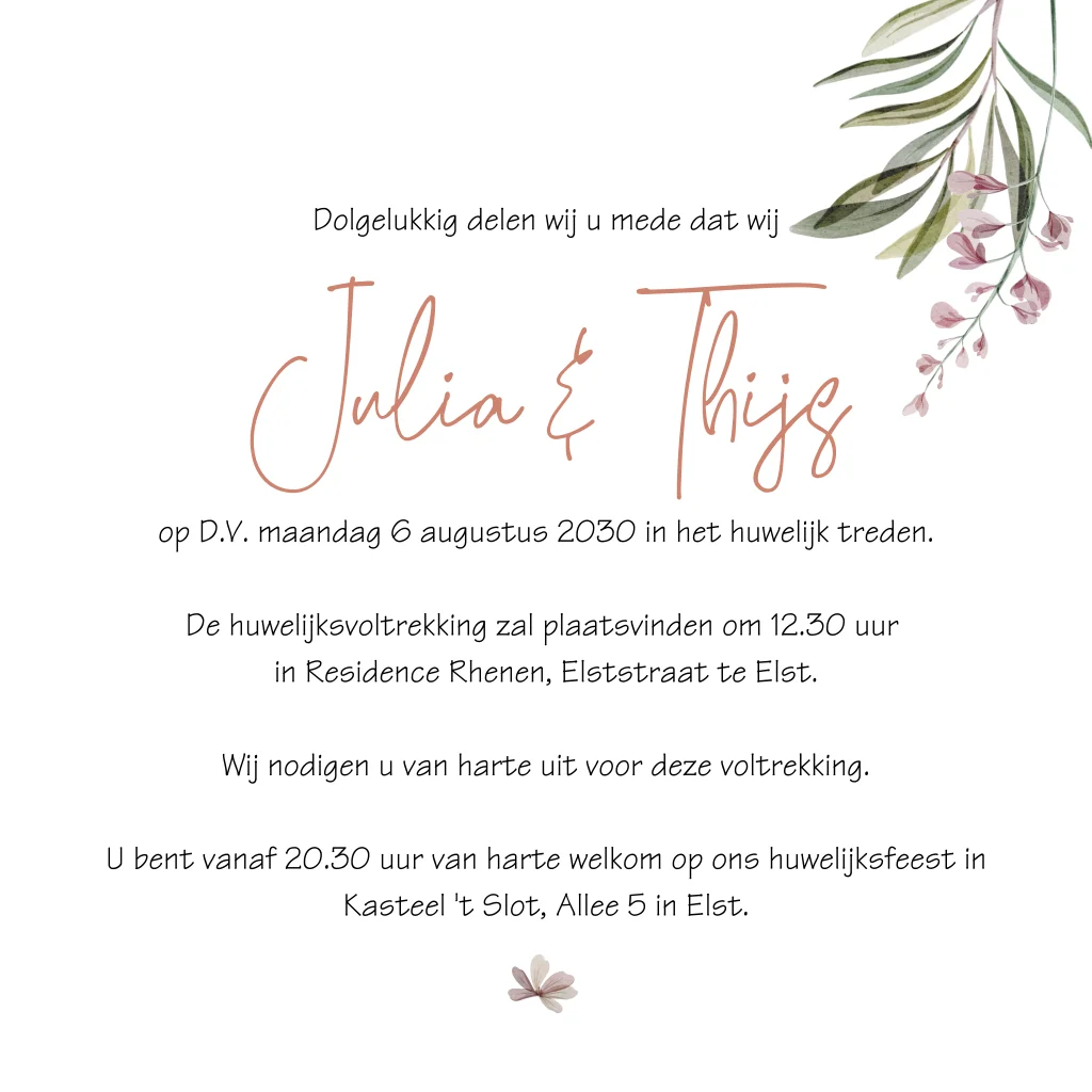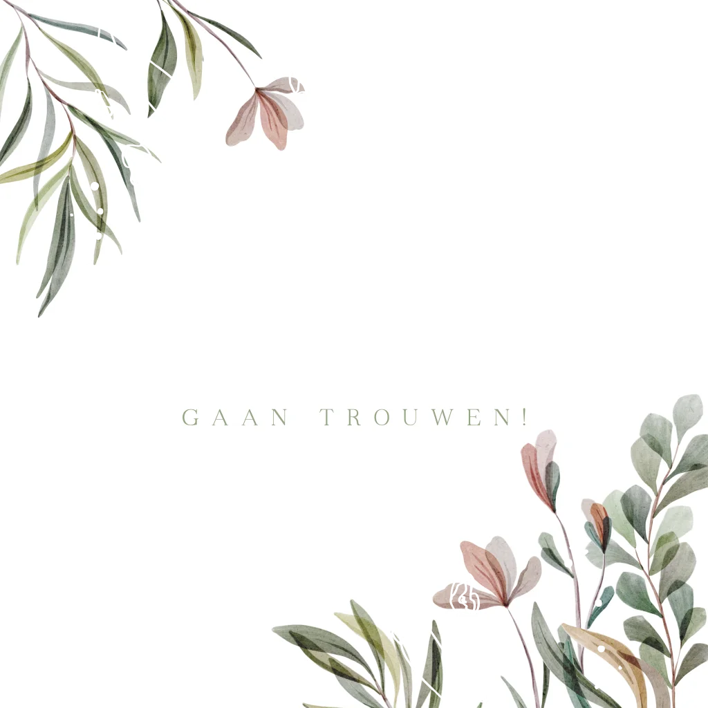 Stijlvolle trouwkaart prachtige bloemen en takjes foliedruk