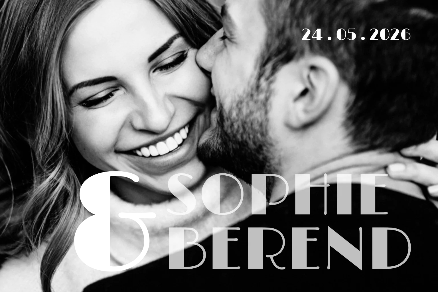 Maak deze luxe trouwkaart met klassieke touch als uitnodiging voor jullie trouwdag bruiloft met een mooi portret van jullie beiden. Het "&" teken en de datum worden in goudfolie geprint. (22339)