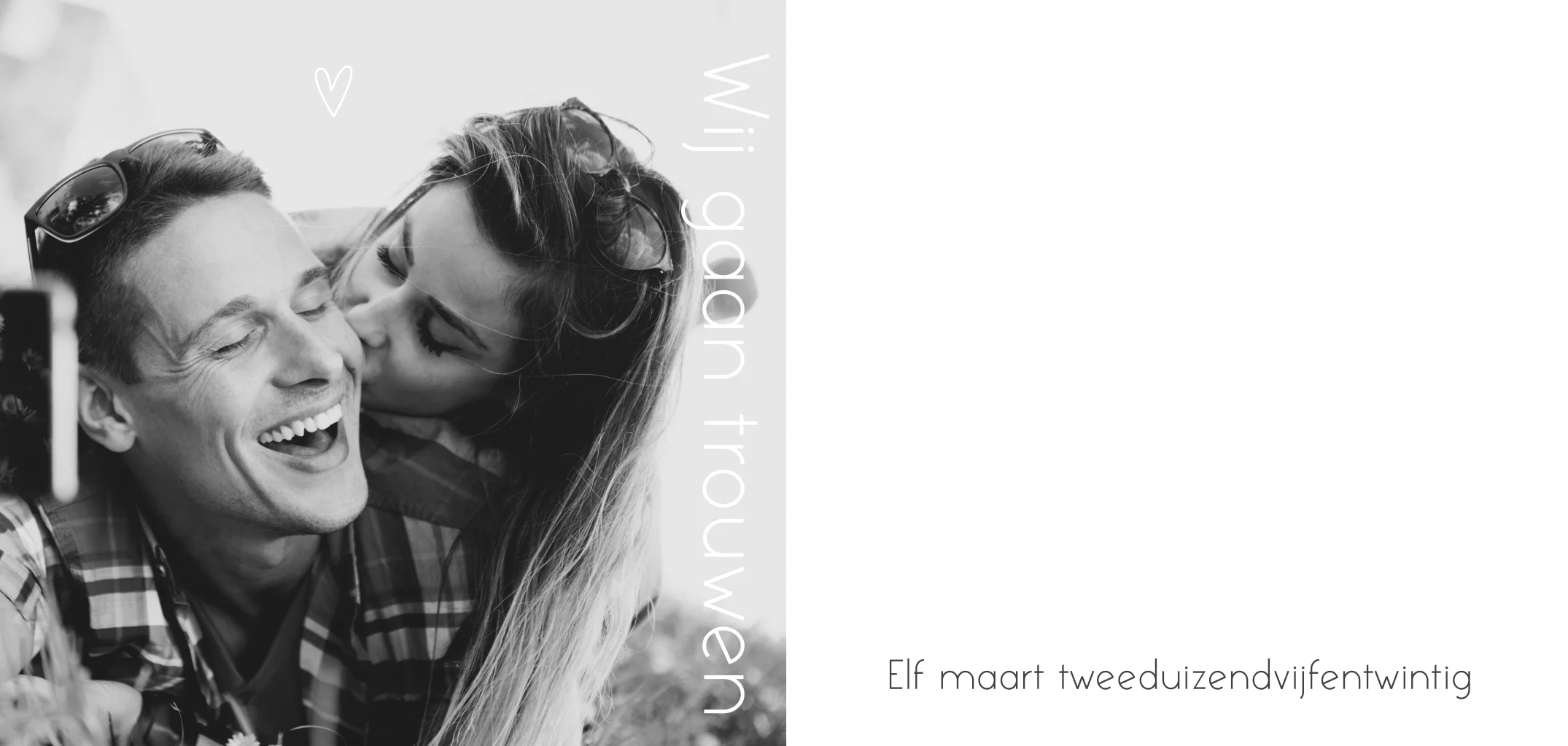 Trouwkaart met zwart-wit foto hartjes goudfolie