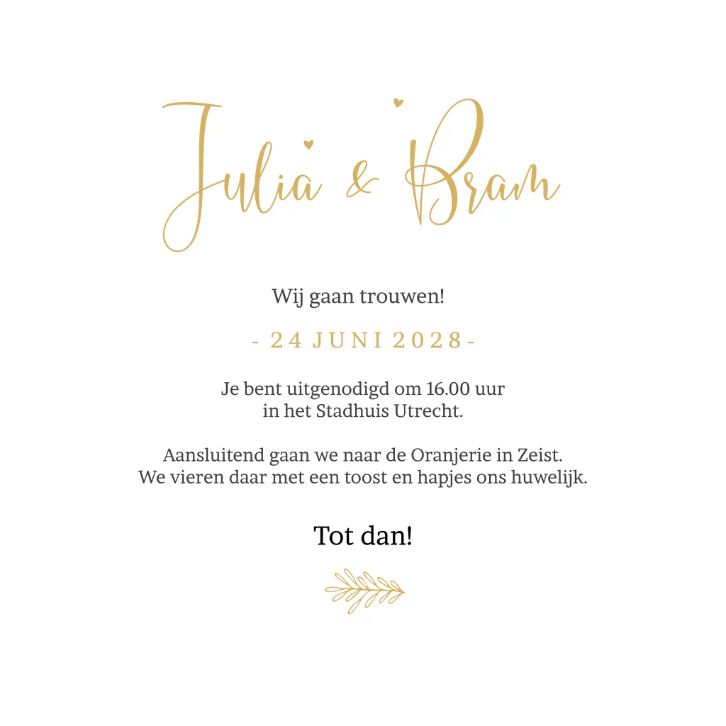 Let op: Dit betreft een trouwkaart met echte foliedruk. Hoe dit precies werkt lees je onderaan op onze